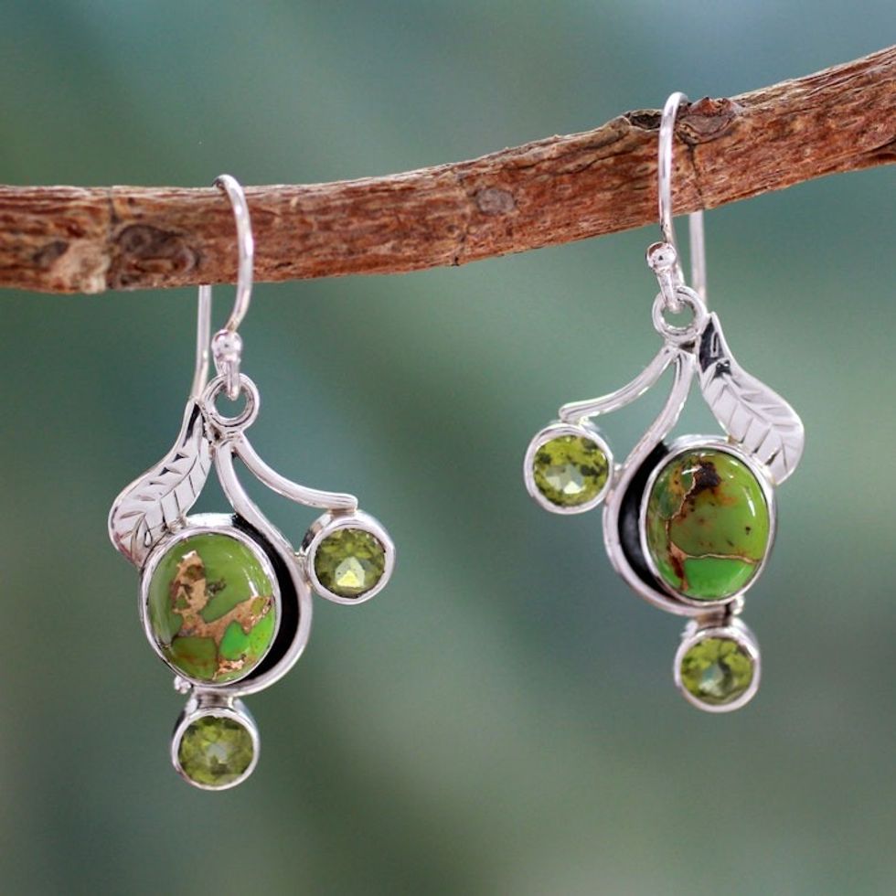 Green Turquoise and Peridot Earrings from India 'Dew Blossom' Item ID: 2671794519