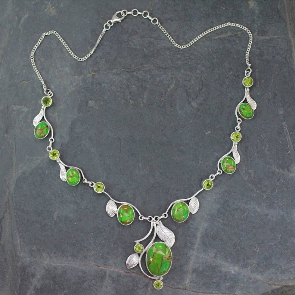 Green Turquoise and Peridot Handmade Necklace from India 'Dew Blossom' Item ID: 2671794587