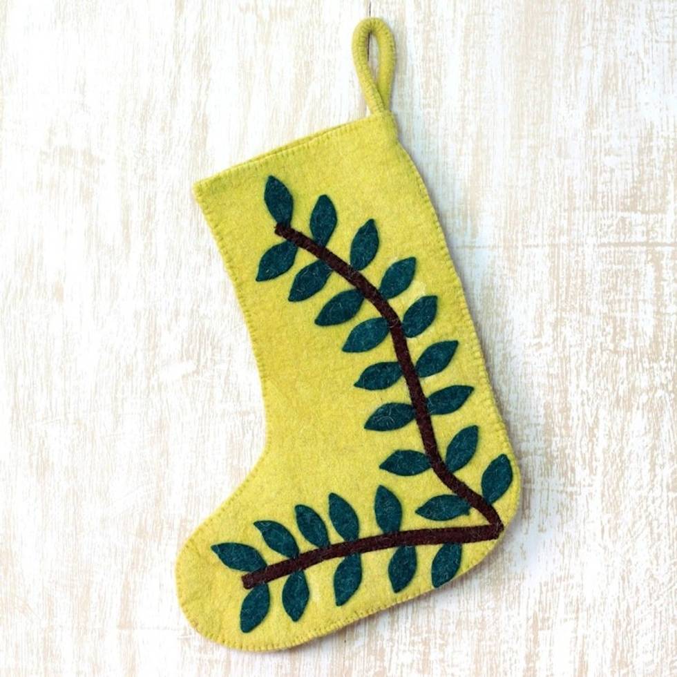 Green Wool Applique Christmas Stocking 'Tropical Holiday' Item ID: 2671794031