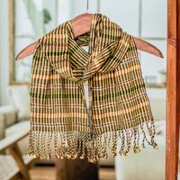 Green-Yellow-Peach Handwoven Cotton Scarf from Guatemala 'Sunny Forest Rose' Item ID: 2669933775