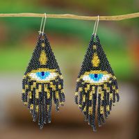 Grey Glass Beaded Waterfall Earrings with Turkish Eye Motif 'Grey Turkish Eye' Item ID: 2671798693