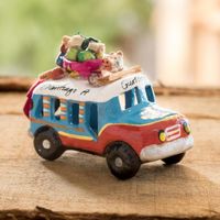 Guatemala 3 Inch Red and Blue Ceramic Bus Figurine 'Blue and Red Old Time Bus' Item ID: 2671771736
