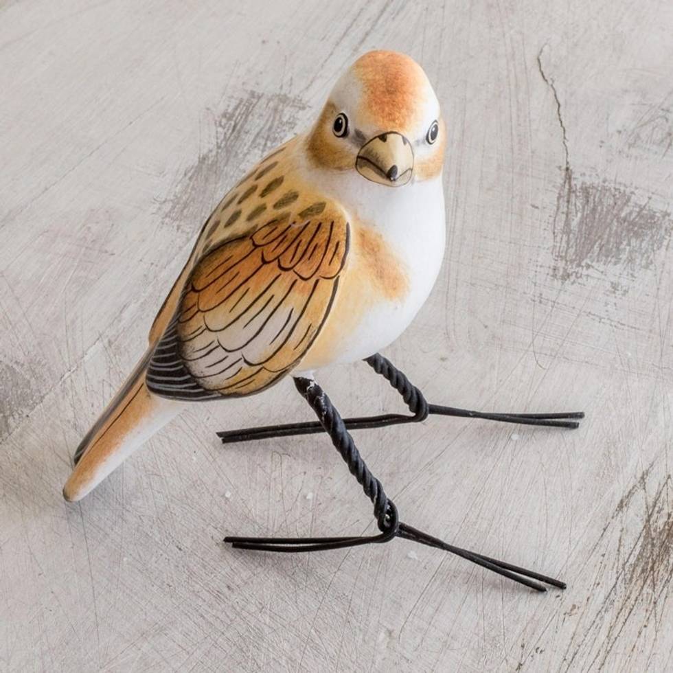 Guatemala Handcrafted Ceramic Snow Bunting Bird Figurine 'Snow Bunting' Item ID: 2671777271