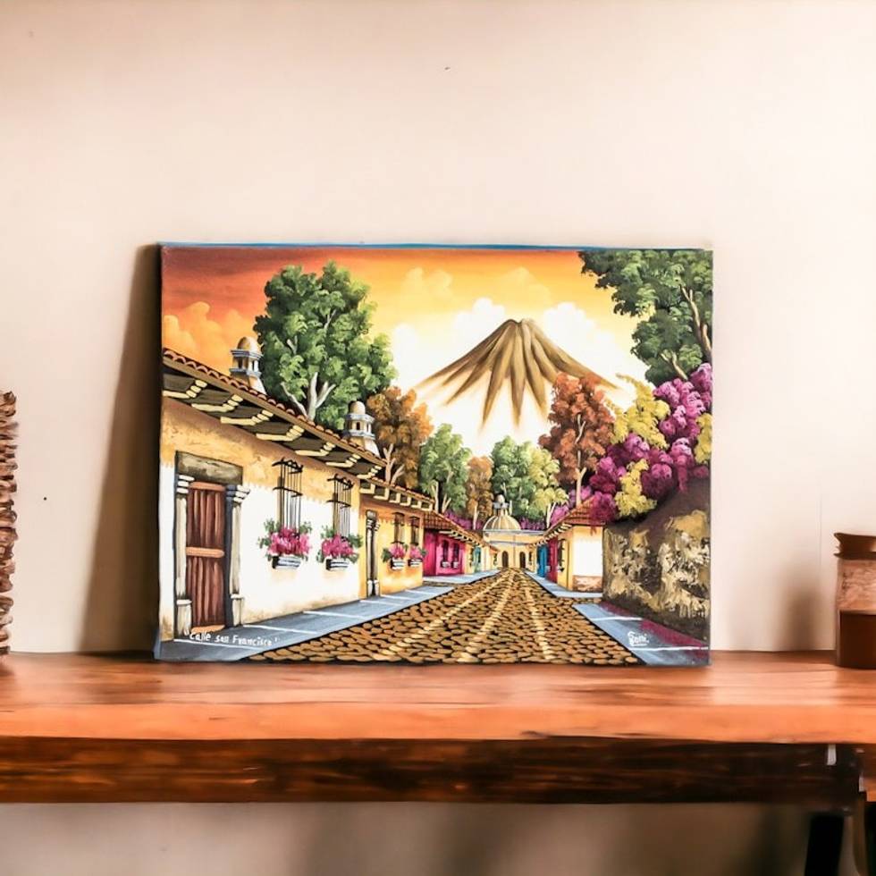 Guatemala Signed Oil on Canvas Painting in Yellows 'Calle San Francisco' Item ID: 2671777780