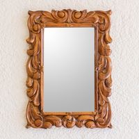 Guatemalan Artisan Crafted Carved Wood Wall Mirror 'Natural Grace' Item ID: 2671780058