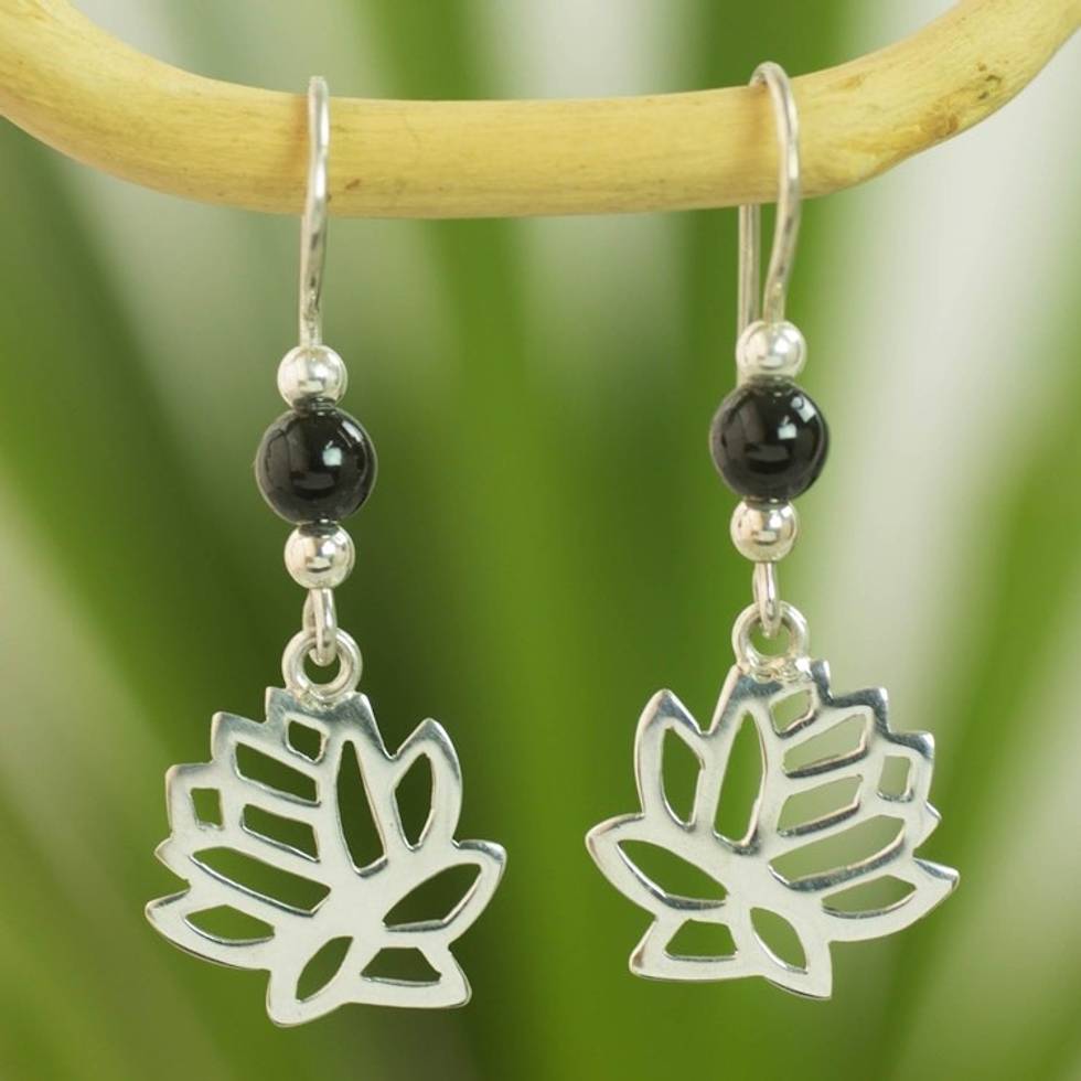Guatemalan Black Jade Lotus Earrings 'Flower of the Lotus' Item ID: 2671777987