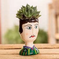 Guatemalan Ceramic Planter with Man's Face 'Mateo' Item ID: 2671772012