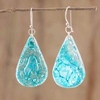 Guatemalan Eco-Friendly Recycled CD Earrings 'Aqua Drops' Item ID: 2671776853