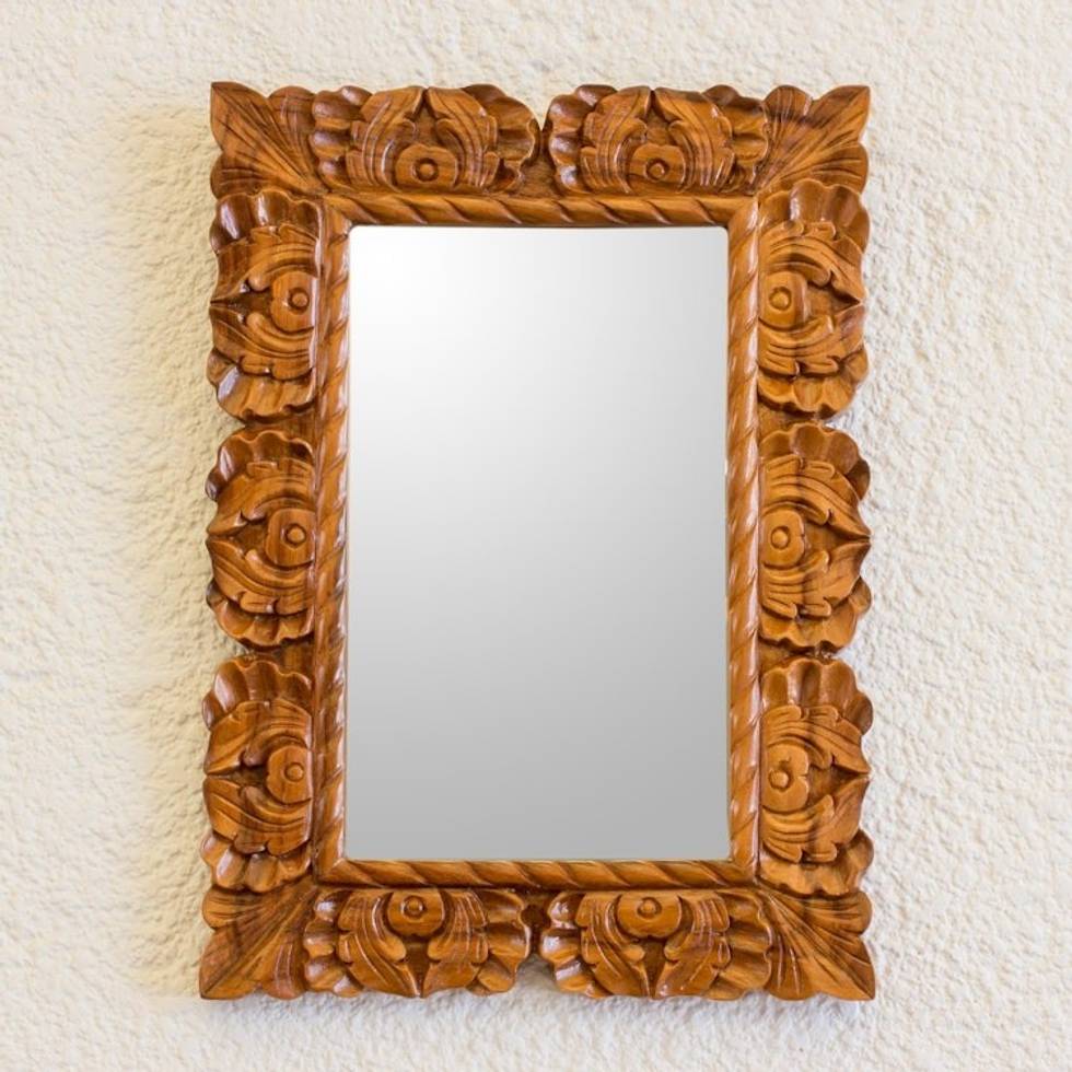 Guatemalan Hand Carved Conacaste Wood Wall Mirror 'Naturally Baroque' Item ID: 2671779234