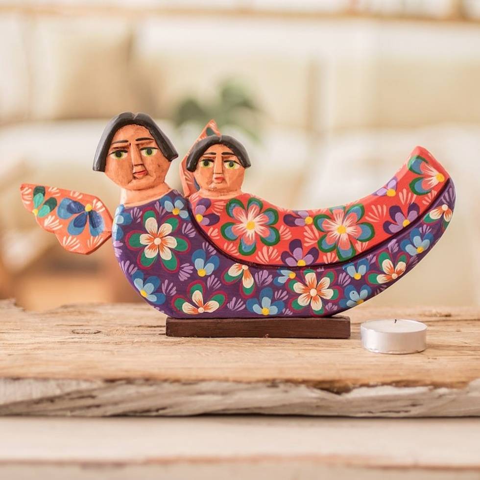 Guatemalan Hand Carved Floral Angel Sculpture 'Protective Angels' Item ID: 2671815752