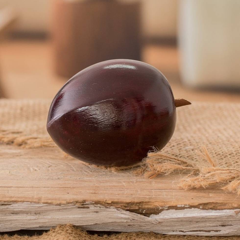 Guatemalan Hand-Carved Painted Cypress Wood Plum Figurine 'Guatemalan Plum' Item ID: 2671770398