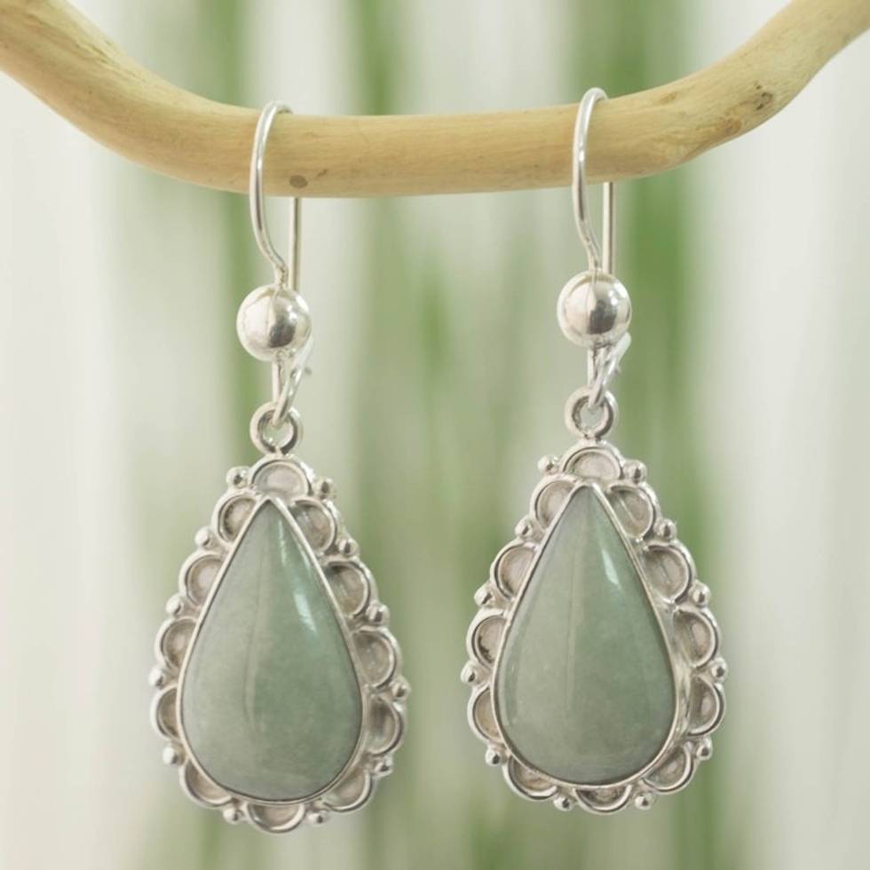 Guatemalan Hand Crafted Apple Green Jade Dangle Earrings 'Apple Green Blossoming Dew' Item ID: 2669933035