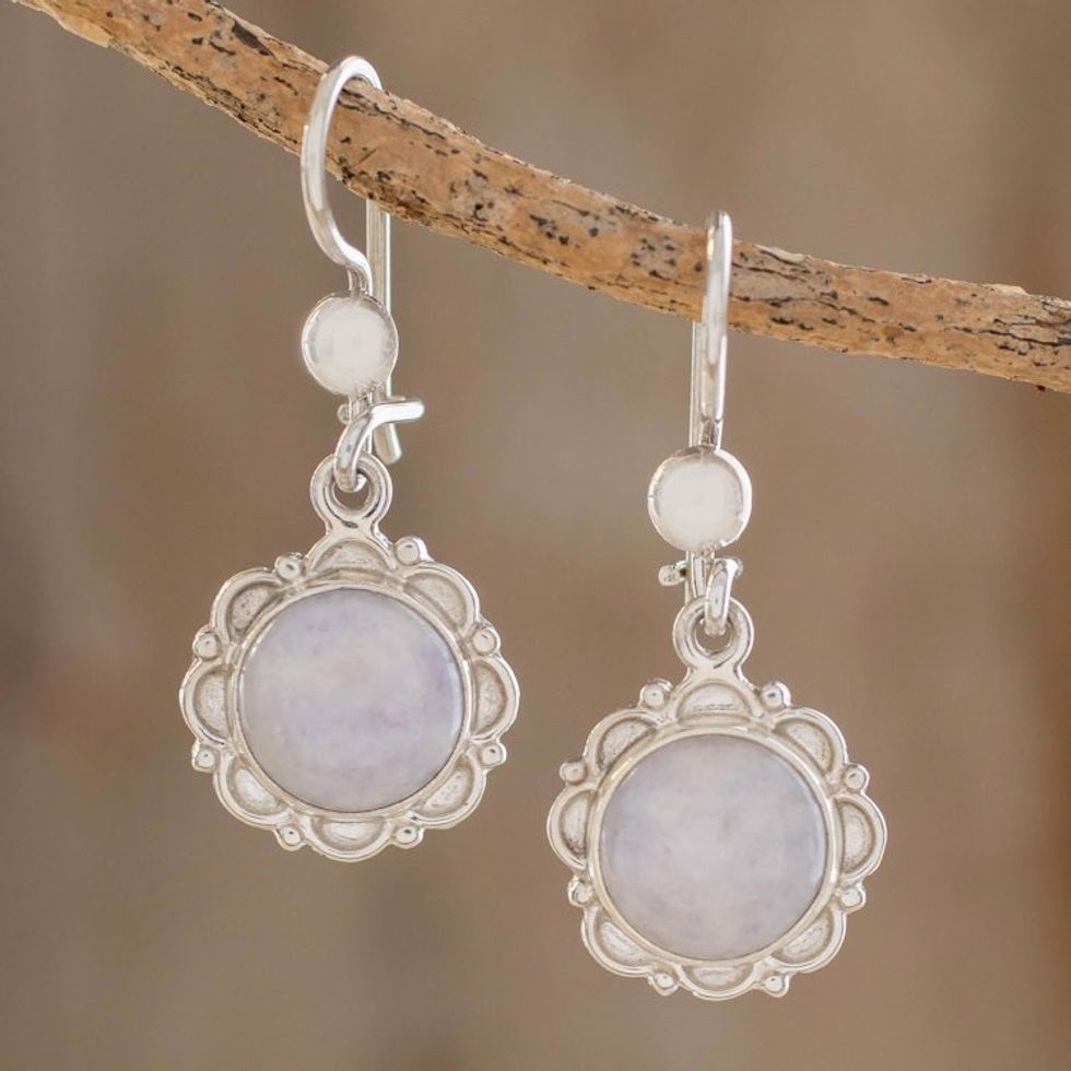 Guatemalan Hand Crafted Lilac Jade Dangle Earrings 'Lilac Dahlias' Item ID: 2669933783