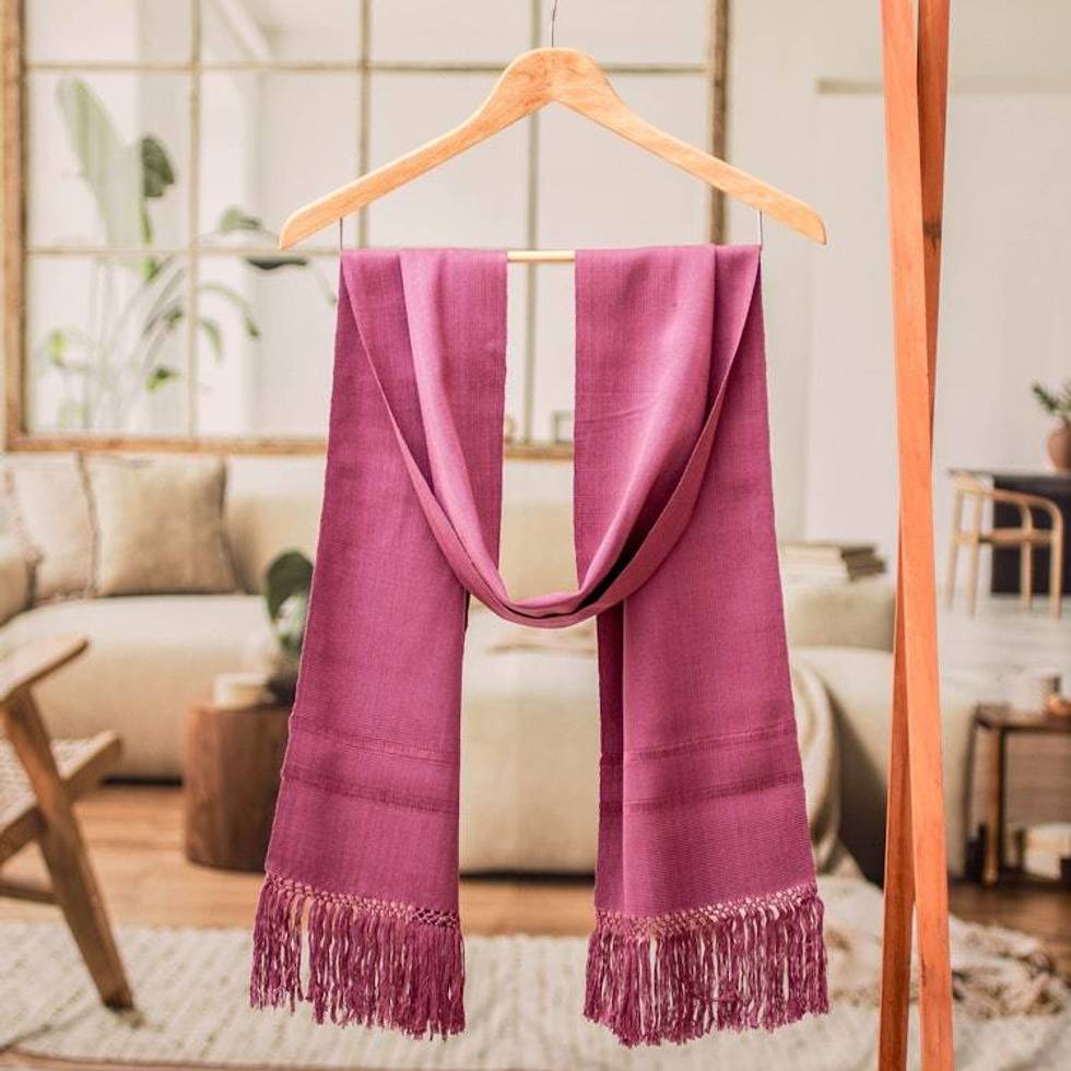 Guatemalan Hand-Woven Fringed Rayon Scarf in Purple Hue 'Sweet Reflections' Item ID: 2676659789