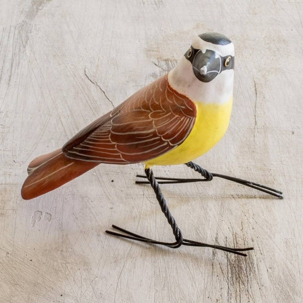 Guatemalan Handcrafted Posable Ceramic Kiskadee Figurine 'Great Kiskadee' Item ID: 2671776742