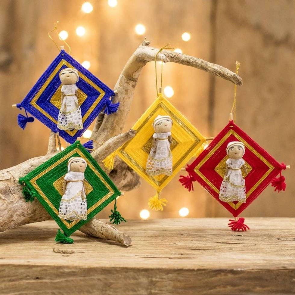 Guatemalan Handmade Cotton Worry Doll Ornaments Set of 4 'Gilded Christmas' Item ID: 2671772373