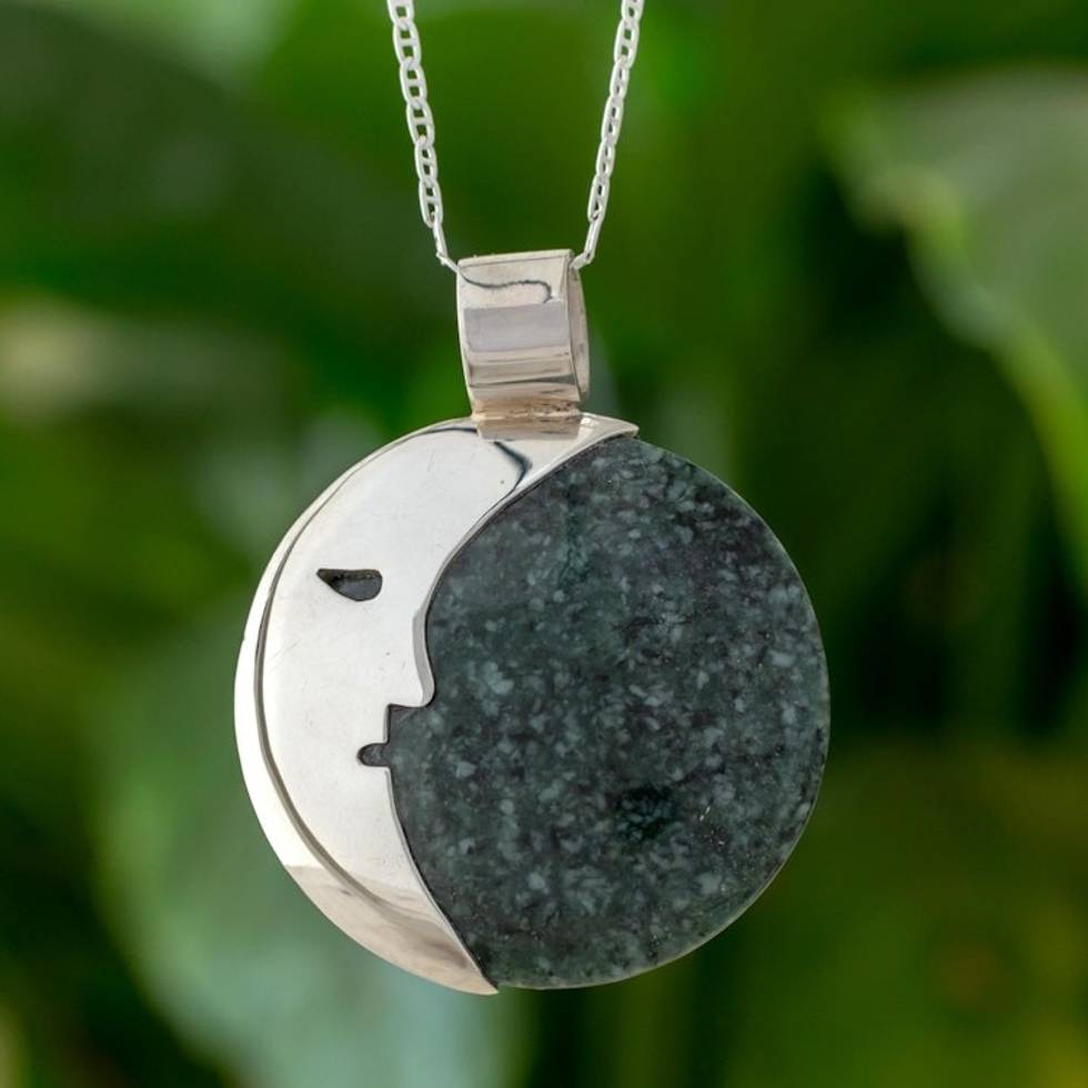 Guatemalan Jade Crescent Moon Pendant Necklace 'Face of the Moon in Dark Green' Item ID: 2671626628
