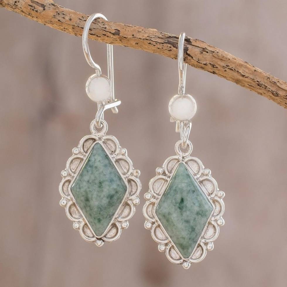 Guatemalan Light Green Jade Earrings 'Diamond Dahlia' Item ID: 2671626887