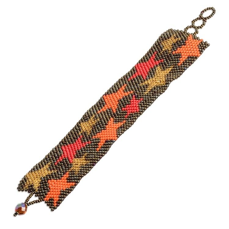 Guatemalan-Made Bronze Glass Beaded Star Wristband Bracelet 'Constellation in Bronze' Item ID: 2671769211