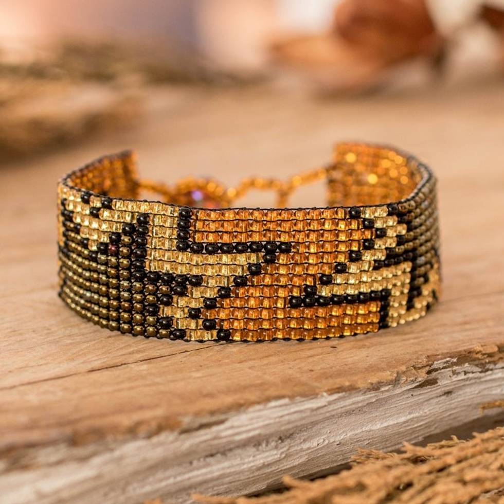 Guatemalan-Made Golden and Bronze Star Glass Beaded Bracelet 'Victorious Blast' Item ID: 2671626184