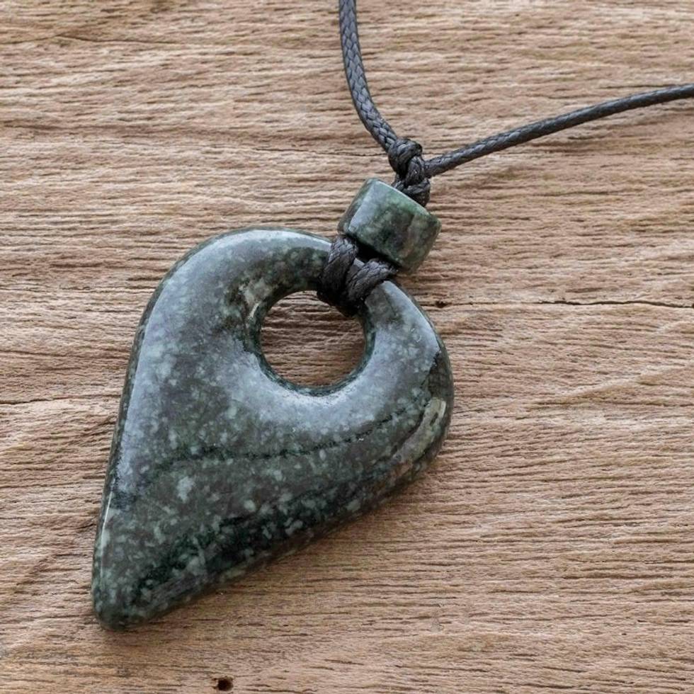 Guatemalan Natural Dark Green Jade Pendant Necklace 'Gota Inversa' Item ID: 2671777026