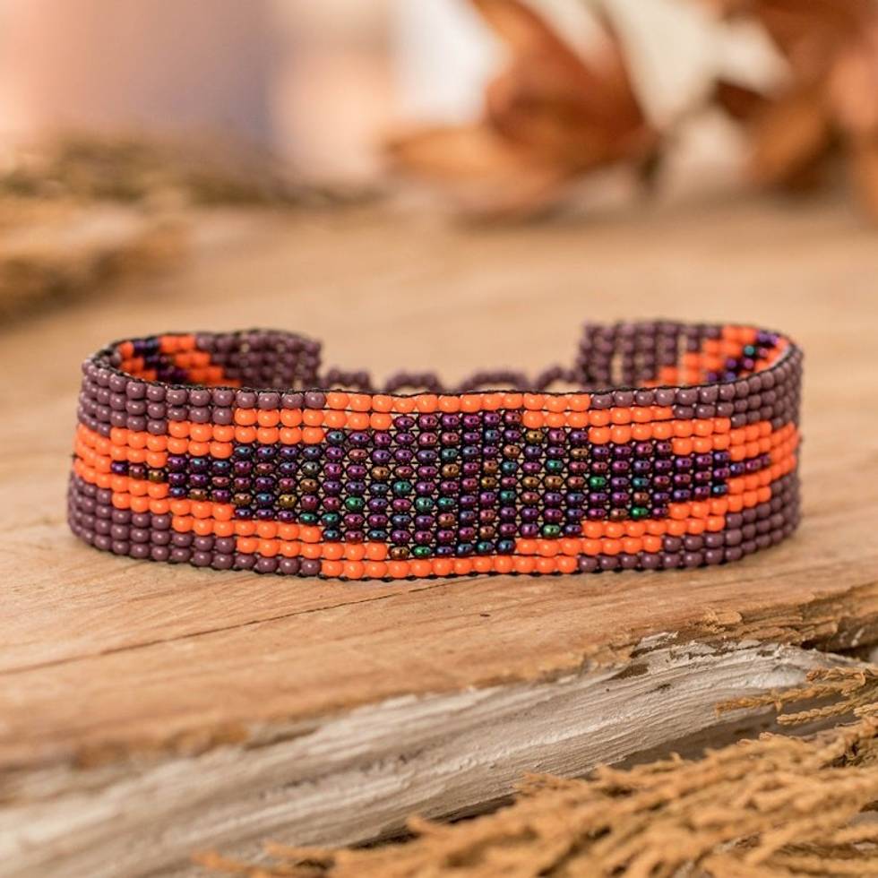 Guatemalan Purple and Orange Glass Beaded Wristband Bracelet 'Stylish Harmony' Item ID: 2671769087