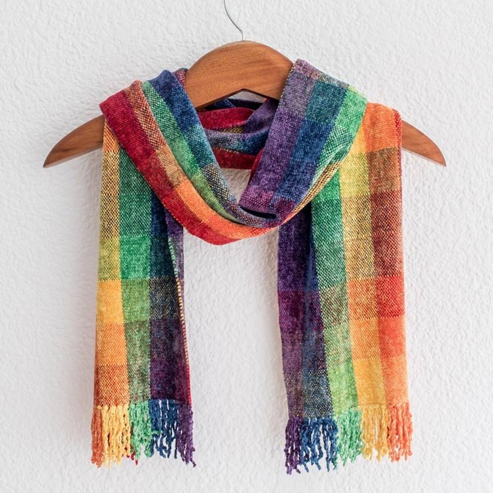 Guatemalan Rainbow Colored Rayon Chenille Scarf 'Gift of the Rainbow' Item ID: 2669892117