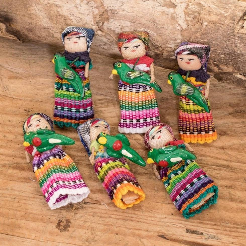 Guatemalan Set of 6 Handcrafted Cotton Decorative Dolls 'Bird Love' Item ID: 2669933577