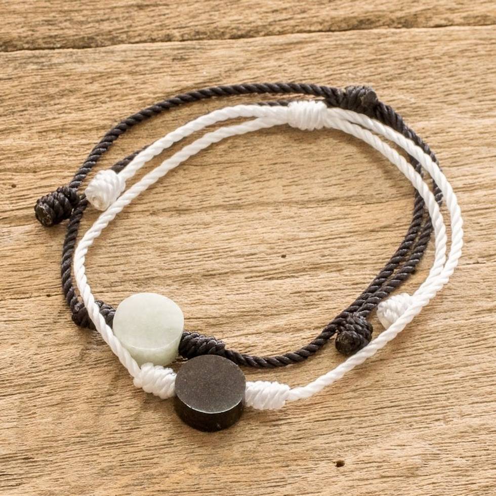 Guatemalan White and Black Cord Bracelets with Jade Pair 'Jade Light and Darkness' Item ID: 2671772162