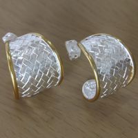 Half Hoop Earrings in Sterling Silver with 18k Gold Accents 'Celuk Weave' Item ID: 2671702494
