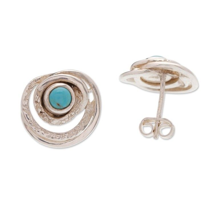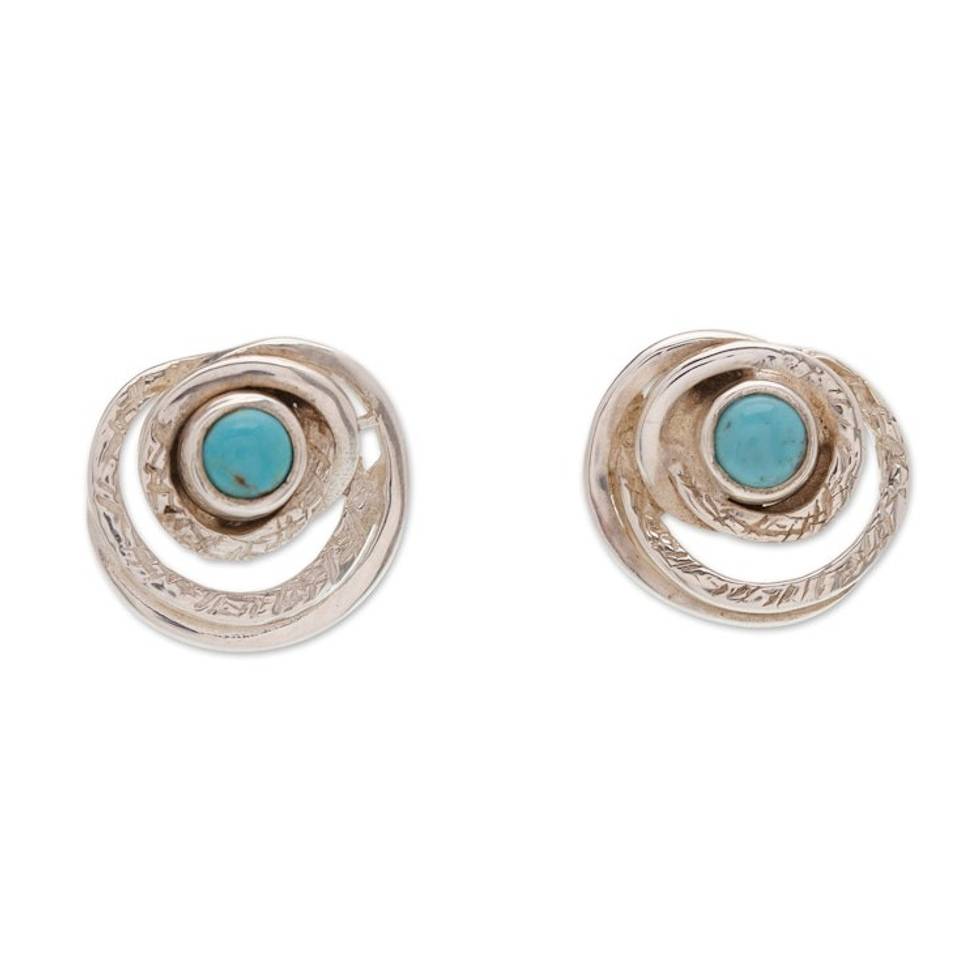 Hammered and Polished Recon Turquoise Button Earrings 'Lagoon Glance' Item ID: 2671807847