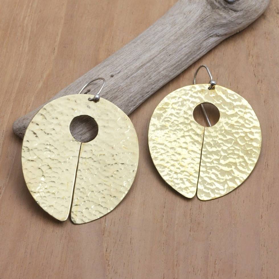 Hammered Finish Brass Dangle Earrings Crafted in Bali 'Metallic Lady' Item ID: 2671763097