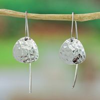 Hammered Modern Sterling Silver Drop Earrings from Mexico 'Minimalist Sparkles' Item ID: 2671639147