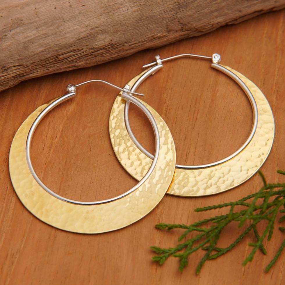 Hammered Round 22k Gold-Plated Hoop Earrings from Bali 'Palatial Sunrise' Item ID: 2671627040