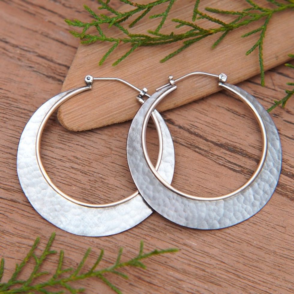 Hammered Round Copper and Sterling Silver Hoop Earrings 'Celestial Sunrise' Item ID: 2671821745