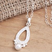 Hammered Sterling Silver and Cultured Pearl Pendant Necklace 'Purpose' Item ID: 2671745436