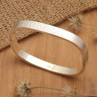 Hammered Sterling Silver Bangle-Style Wristband Bracelet 'Textured Rectangle' Item ID: 2671764592