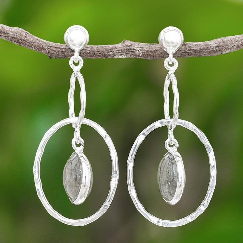 Hammered Sterling Silver Ring Earrings with Labradorite 'Splendid Rings' Item ID: 2671800026