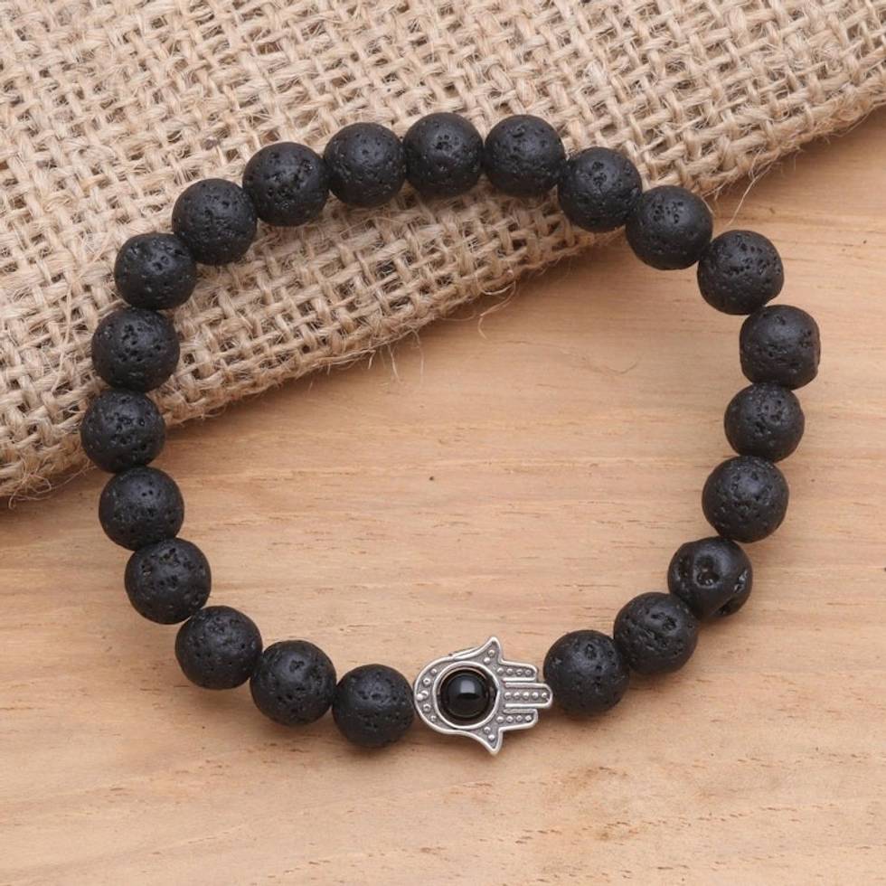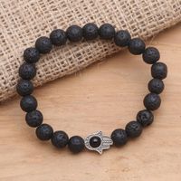 Hamsa Hand Lava Stone Stretch Bracelet with Onyx 'Hamsa Hand' Item ID: 2671744840