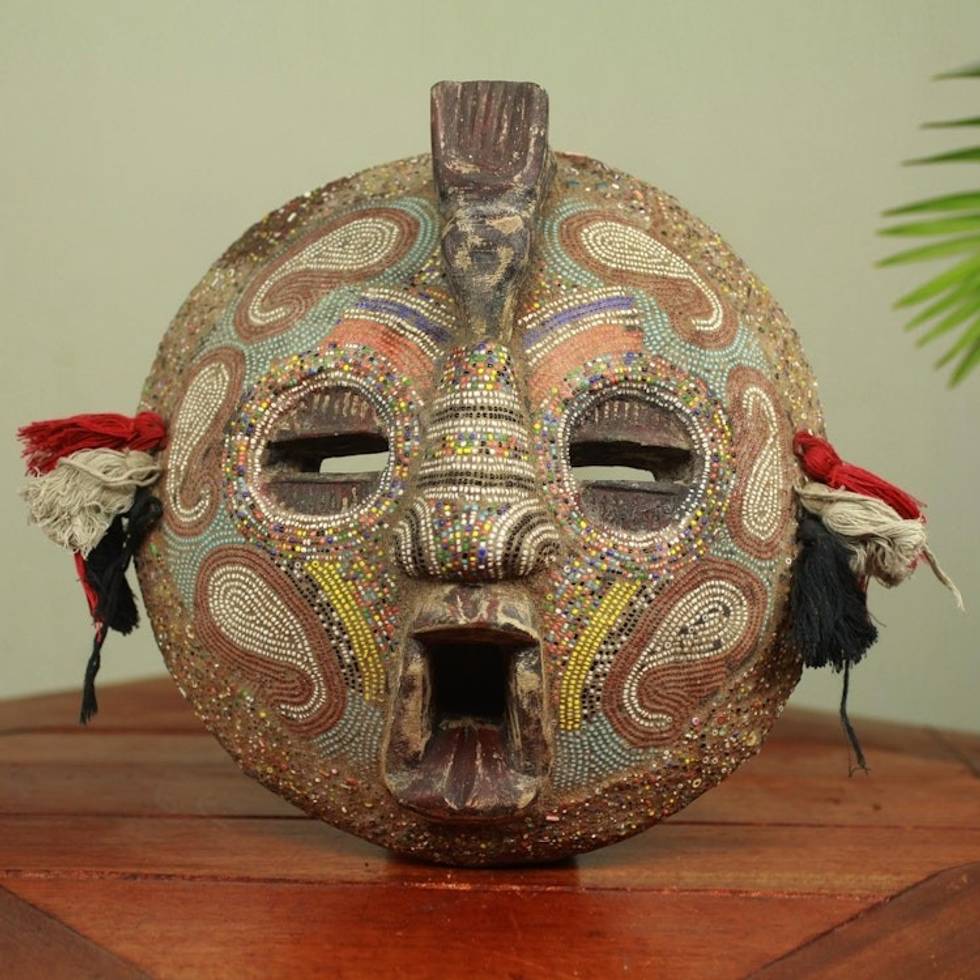 Hand Beaded Wood Mask 'Flying Protector' Item ID: 2671806656