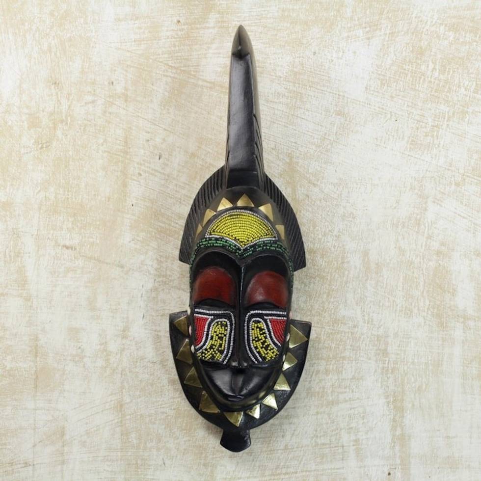 Hand Beaded Wood Wall Mask 'Senufo Purification' Item ID: 2671806972