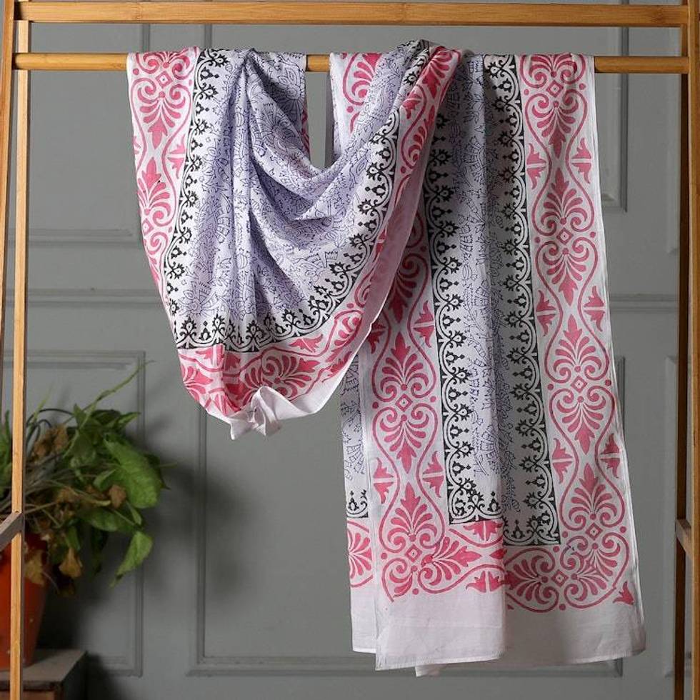 Hand-Block Printed Cotton Sarong with Floral and Leaf Theme 'Gorgeous Garden' Item ID: 2676665899