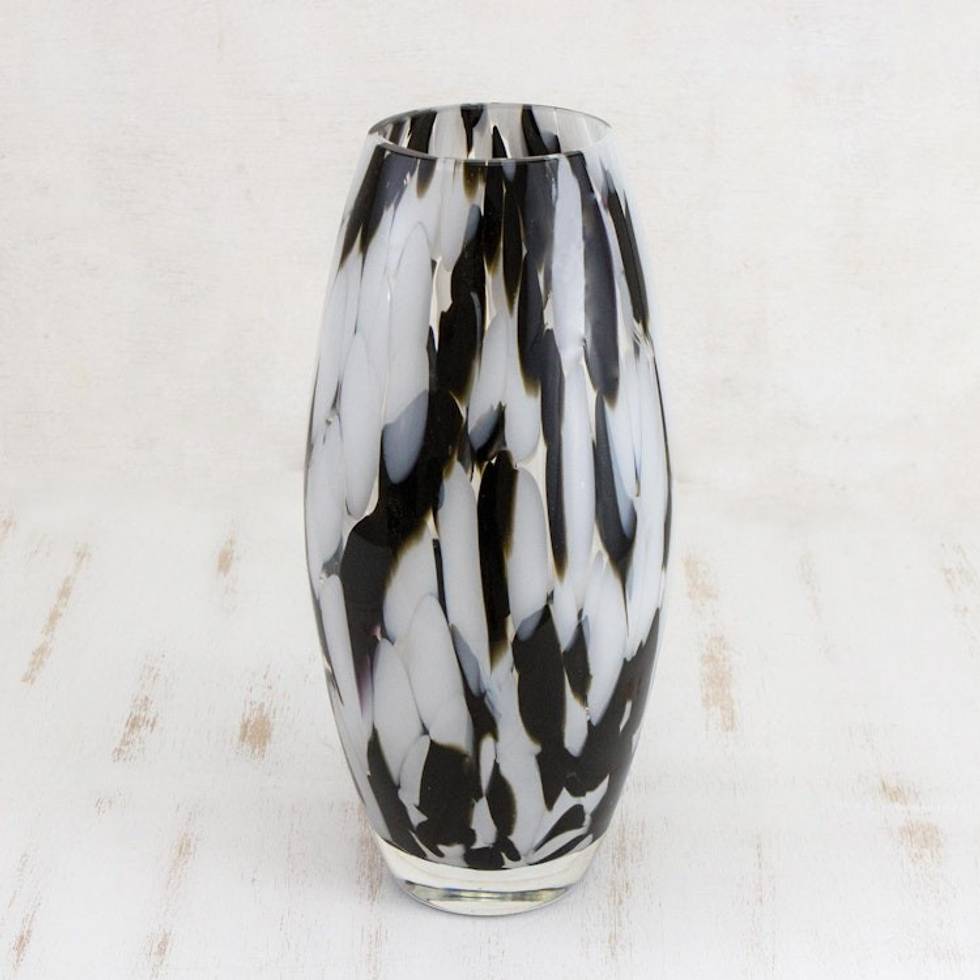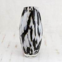 Hand Blown Murano-Style Art Glass Vase in Black and White 'Elegant Drip' Item ID: 2669935306