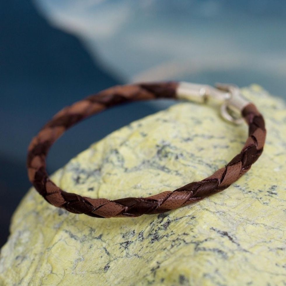 Hand Braided Brown Leather Bracelet 'Coffee and Cocoa' Item ID: 2671402261