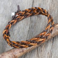 Hand Braided Silver Accent Brown Leather Wrap Bracelet 'Brown Shadow Paths' Item ID: 2671802319