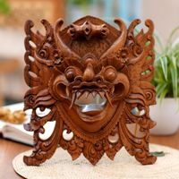 Hand-Carved Acacia Wood Wall Mask of Barong from Bali 'Watchful Barong' Item ID: 2671734318