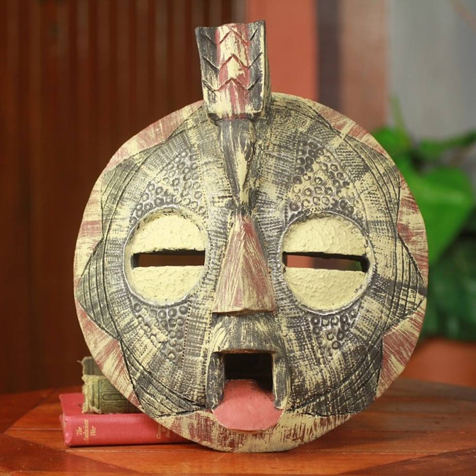 Hand Carved African Mask of Forgiveness with Bird 'Fatse' Item ID: 2671806740