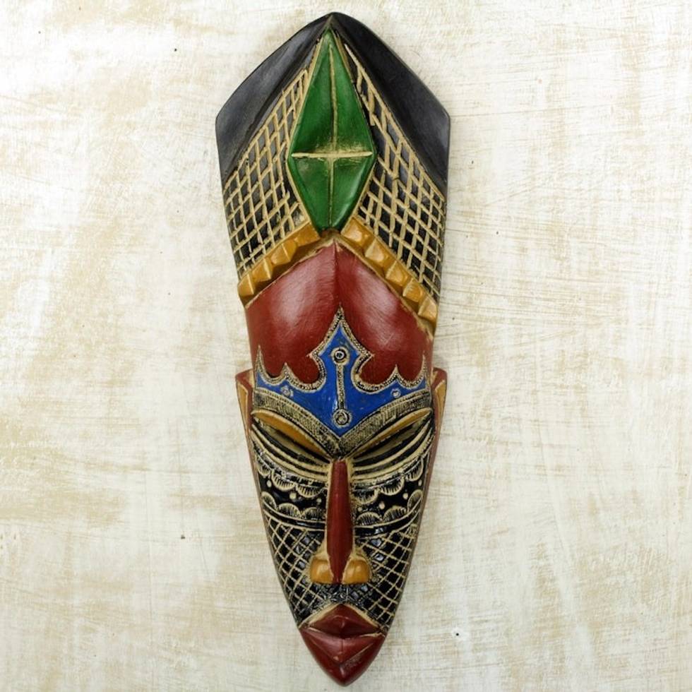 Hand Carved African Rubberwood Mask from Ghana 'Gratitude' Item ID: 2671800773