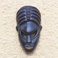 Hand-Carved African Sese Wood Mask in Black from Ghana 'Fritete' Item ID: 2671805594