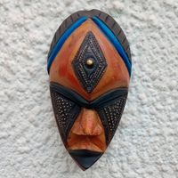 I was immediately attracted to the colors of this mask. They match my sofa and the painting hanging over it perfectly. And of course the expression of the mask is captivating. Sort of a sad face, but also a peaceful face. Love it!Superb crafting and imagination.Marsha